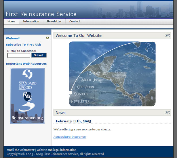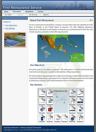 First Reinsurance Service is a small company of reinsurance brokers. While they didn't need any particularly heavy application to control the content, they did require that their website was representative of their professional attituted but was at the same time appealing and attrative.